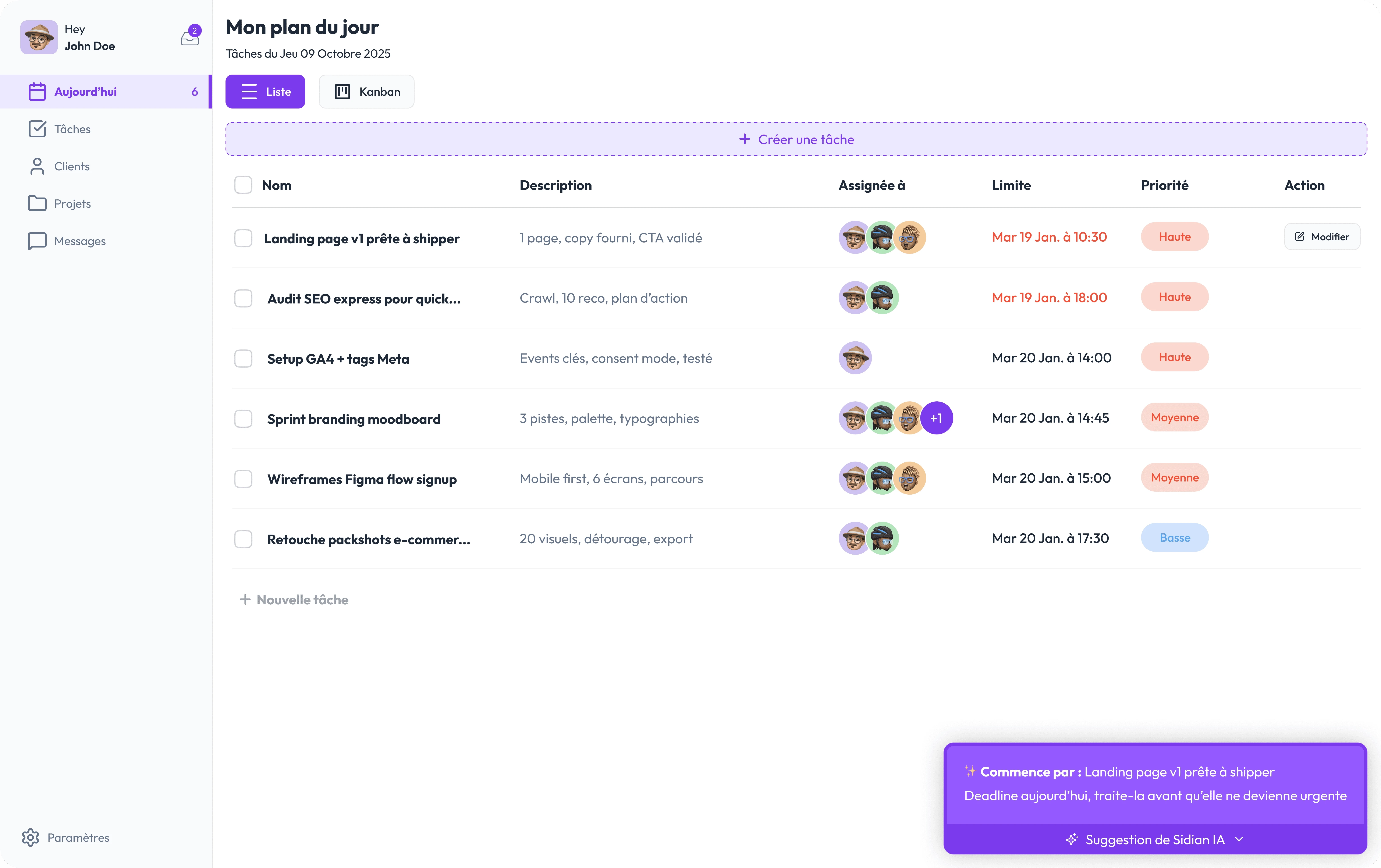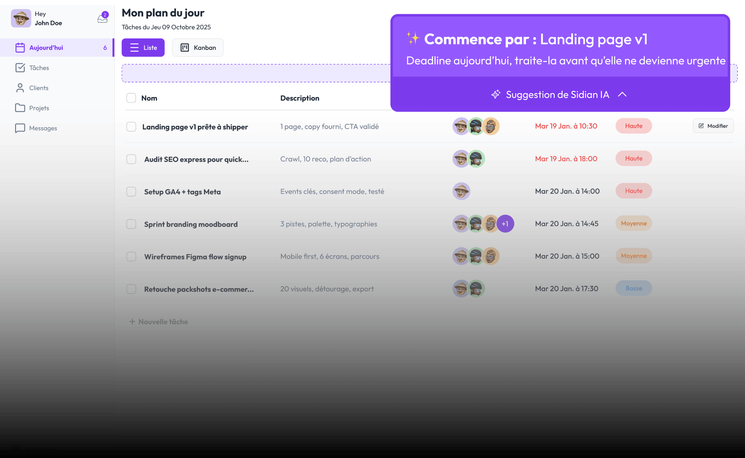 Si ton client n'a pas répondu sous 24h, Sidian le relance pour toi. Tu passes à autre chose.